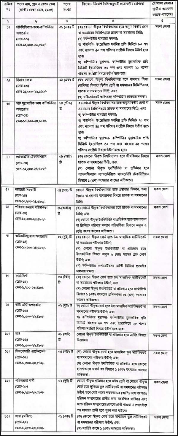 পদের সংখ্যা: ১৩টি