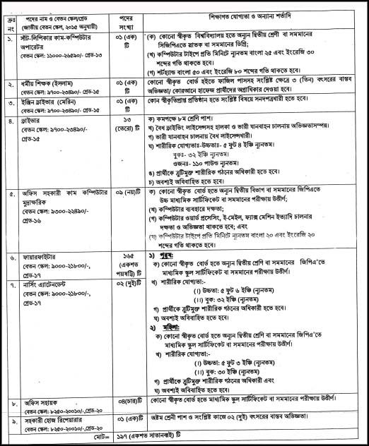 পদের সংখ্যা: ৯ পদে ১৯৭ জন